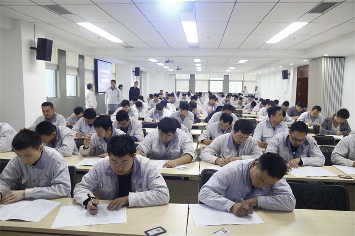 當天上午8:30,在研發大樓201培訓室,鉗工、數控加工、起行工三個工種100余人進行了理論比賽考試。
