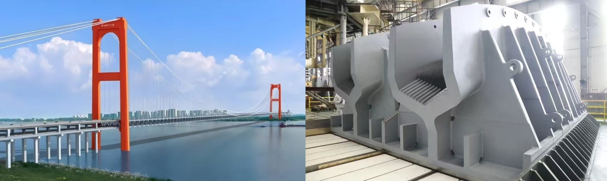 新興產業之懸索橋索鞍索夾:天塹通信息賦能,品質建設中國橋。武漢船機公司是國內建造大跨度懸索橋索鞍索夾最具實力的企業之一。公司以加快新一代信息技術與制造業深度融合為主線,發揮重型起吊設備和大型數控落地鏜銑床等設備優勢,大力推進懸索橋索鞍索夾綠色、智能制造技術應用和發展進步。2024年以來,公司相繼承接了張靖皋大橋、李埠大橋、哈爾濱松花江特大橋、廣東獅子洋大橋等多個項目的索鞍索夾,為助力打造國家級綠色示范工程和國家品質工程,打造國民經濟建設和我國橋梁事業的健康發展進步貢獻了力量。