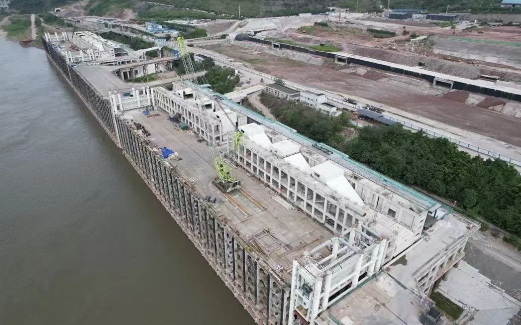 重慶港寸灘國際郵輪母港港口工程港機設備主體結構吊裝完成