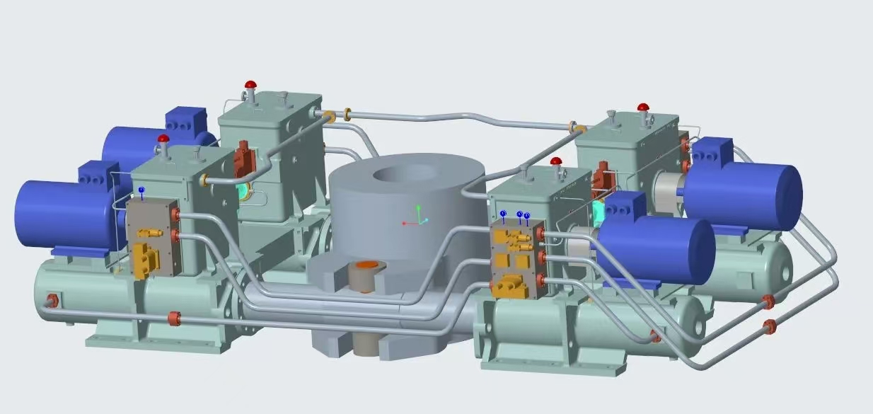 17000TEU雙燃料集裝箱船是綠色新能源船舶的典型代表,武漢船機(jī)為該船提供的舵機(jī)型號為FE42-1150-T050,最大工作扭矩可達(dá)11280kN·m,最大轉(zhuǎn)舵角度為37度,單臺舵機(jī)配備的四套動力系統(tǒng)為雙柱塞四油缸拔叉式舵機(jī)結(jié)構(gòu),具有系統(tǒng)性集成度高、可靠性高、性能優(yōu)等特點(diǎn)。