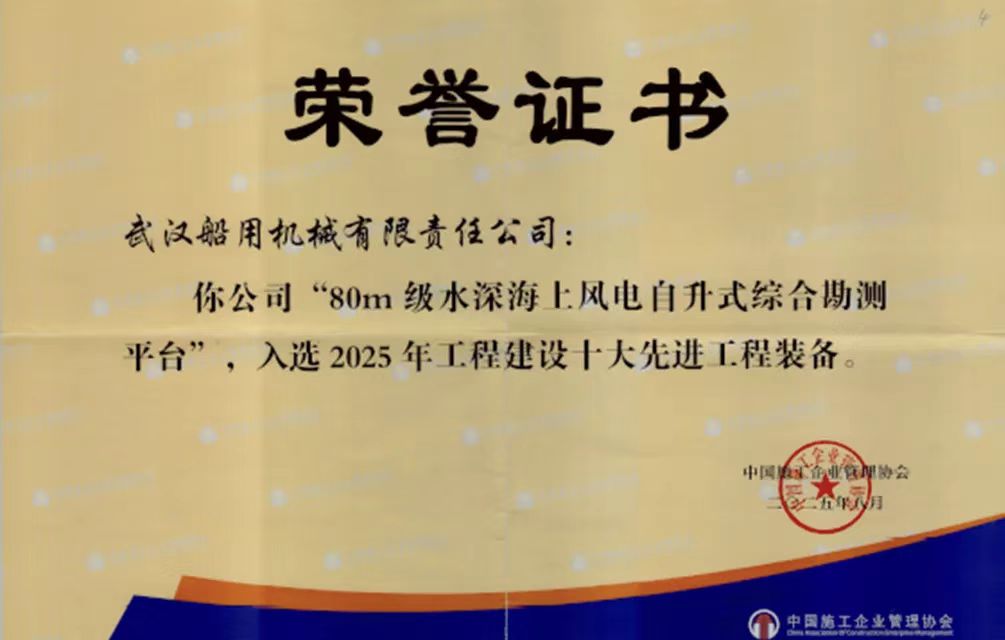近日,2025年工程建設十大先進工程裝備名單正式公布, “80m級水深海上風電自升式綜合勘測平臺”成功入選。該平臺是中船集團武漢船機總包建造的“華東院308”平臺,中國電建集團華東勘測設計研究院有限公司等多家單位共同研制。作為當前我國技術指標先進的海洋新能源綜合勘測平臺,在深遠海風電勘測實際工程應用中發(fā)揮了突出作用。