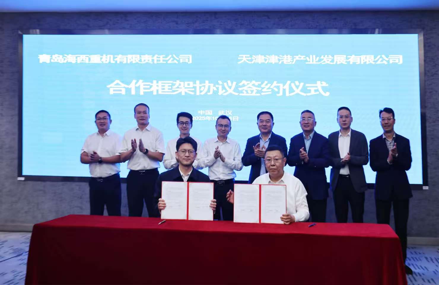 隨后,青島海西重機有限責任公司與天津津港產業發展有限公司簽署合作框架協議。根據協議內容,雙方將充分發揮各自在技術研發、生產制造和市場開拓等方面優勢資源,重點聚焦港口機械設備制造、海洋工程裝備研發以及智能化信息系統推廣應用等核心領域開展全方位合作,同時將天津港“三型”港口建設成功經驗推廣應用到國內外,實現共贏發展。